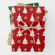 Winter Weihnachtsbaummuster Rot, Grün und Gold Geschenkpapier Set
