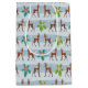Einzigartige Geschenktasche mit Retro-inspiriert niedlichem Reh auf Schnee mit Haufen von Schlitten- und Segelglocken. Moderne Mod im Stil der Mitte des Jahrhunderts, perfekt für Weihnachtsgeschenke oder andere Wintergeschenke. Ursprüngliches Design, Copyright Jennifer Kistler 2021.