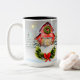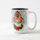 Winter/Weihnachtsstall Tasse - die Farben Rot, Weiß, Grün, Hellblau und Grau.