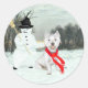 Winter Westie mit einem Schneemann Runder Aufkleber