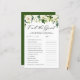 Treffen Sie mit den Gästen, um die Antworten auf die Fragen zu finden! | Fügen Sie diese lustige und spielerische Duschspielkarte zu Ihrer Veranstaltung hinzu. Diese anpassbare Spielkarte "Finde den Gast" zeigt Aquarellbilder von weißen Blume und Grünpflanzen. Personalisieren Sie diese, indem Sie Ihre Fragen hinzufügen. Dieses weiße Brautparty mit Blumengusskarte eignet sich hervorragend für Brautpartys und Polterabende im Frühjahr und Winter.
