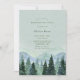 Dieses Design bietet grünen Wald smaragdgrünen Weihnachtsbäumen und Schnee mit staubigen blauen und hellgrünen Wasserfarbenhügeln. Ideal für Ihre Hochzeitsfeier während der Weihnachtszeit!