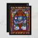 Send your holiday wishes with this cozy stained glass Christmas card