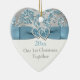 Erinnern Sie sich an Ihren besonderen Tag mit dieser wunderschönen Keramik glitzernd blau, silber grau und weiß Schneeflocken ersten Weihnachtsfest "Happily Ever After" Sake-Ornament. Es hat ein DRUCKTES eisblaues Band und Bogen mit einem Paar Diamantschmuck und IMITATE blauer Glitzer verbunden Herzen auf ihm. Sie können den Text anpassen, um zu sagen, was Sie gewollt haben. ****Bitte stellen Sie sicher, dass Ihr Text an der Stelle platziert ist, an der Sie ihn gewollt haben, da er wie auf Ihrem Monitor ausgegeben wird. Zazzle wird nichts korrigieren. Wenn Sie Hilfe benötigen, schicken Sie bitte eine E-Mail an niteowlstudio@gmail.com.