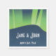 Mit diesen Servietten erstellen Sie ein koordiniertes Aussehen für Ihre winterspezifische Hochzeit oder Veranstaltung mit einem im Art-Déco inspiriert stilisierten Polarlicht, das durch die Decke fließt und unten Beispieltexte enthält, die Sie für Ihre eigenen Bedürfnisse anpassen können. Diese Serviette wird mit jedem anderen Winter Wonderland Auroras Produkt übereinstimmen, sodass Sie Ihre Veranstaltung so koordiniert gestalten können, wie Sie es wünschen.