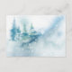 Schöne Aquarelllandschaft mit Fichten- und Kiefernbäumen auf schneebedecktem Hintergrund.