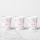 Winterwunderland Brautparty personalisierte Papiertassen mit rosa und lila Schneeflocken. Enthält einen schönen Script-Schriftart in Imitaten Gold und Glitzer Text Design. Ein Brautparty zum Thema Wintersport ist perfekt, wenn es um Dezember oder Winter geht. Niedliches und mädchenhaftes Brautparty bevorzugt Tags. Digitale Darstellung von Kristine Lee. Weitere Informationen finden Sie unter www.kristineleedesigns.com