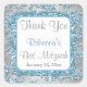 Dieses elegante 1,5" quadratische eisblau, silbergraue IMITATE Glitzer Damask Muster Bat Mitzvah Gefallen Dankeschön Ihnen Aufkleber hat einen Hintergrund von verschiedenen weißen Schneeflocken darauf, dass die Bat Mitzvah Einladungen unten gezeigt. Sie können den Text ändern, um zu sagen, was Sie gewollt haben, und Sie können auch die Größe und/oder Form des Aufklebers ändern, aber um die besten Ergebnisse zu erzielen, schicken Sie mir bitte eine E-Mail, um die Form zu ändern. Wenn Sie weitere passende Artikel in diesem Design benötigen, senden Sie Ihre Anfrage bitte an niteowlstudio@gmail.com.