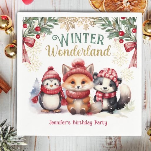 Winter Wonderland Cute Snow Animals Birthday PartyDesignt von H-Art Studio Design