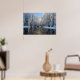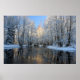 Schöner Schuss eines Teiches, der von schneebedeckten Bäumen umgeben ist und auf den Baumgipfeln die Sonne glitzert. Fantastischer 31 x 21 Druck verfügbar! Schönes gerahmt! Großartiges Geschenk!
