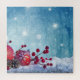 Dieses Design zeichnet sich durch ein schönes festliches Bild einer Winterlandschaft aus, in der Schnee fällt und Sterne funkeln. Im Vordergrund steht ein Sortiment an saisonalen Beeren und Eicheln.