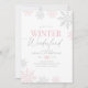 Winter Wonderland Silver Pink Glitter 1st Birthday Einladung