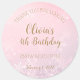 Feiern Sie das Geburtstagsmädchen mit diesem rosa und goldenen Winter Wonderland Frozen Schneeflocke Geburtstagsaufkleber Danke Labels! Der gesamte Text kann einschließlich Alter geändert werden.