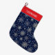 Add a unique touch to your holiday mantel with this festive snowflake stocking. Featuring a beautiful array of white and blue snowflakes against a rich navy background, accented with a vibrant red cuff. This charming winter accent is perfect for holding small treats and wishes, bringing a joyous and cozy feel to your Christmas celebration. Ideal for anyone who cherishes the magic of a snowy holiday season.