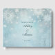 Feiern Sie das glückliche Paar mit einem Winterwunderland! Schneeflocken und schimmernde Lichter verstreuen sich in einem hellblauen Hintergrund in einem subtilen Winterwald, um die Schönheit des Winters für Ihre Feier ins Innere zu bringen. Ein beeindruckendes Gästebuch für Ihre Winterzeit-Hochzeit oder andere Winterwunderlandsereignisse. Verfügbar mit passenden Produkten.