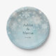 Feiern Sie das glückliche Paar mit einem Winterwunderland! Schneeflocken und schimmernde Lichter verstreuen sich in einem hellblauen Hintergrund in einem subtilen Winterwald, um die Schönheit des Winters für Ihre Feier auf diesem hübschen Teller zu erwecken. Erweckt einen schillernden Eindruck bei Ihrer Winterzeit Hochzeit oder einem anderen Winterwunderland-Ereignis. Dieser Teller kann auch für eine Verlobungsfeier, Jubiläumsfeier oder Geburtstagsparty angepasst werden. Verfügbar mit passenden Produkten.