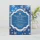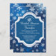 Schöne Bridal Duscheinladung mit weißem Schneeflocken Set auf blauem Hintergrund. Perfekte Einladung zum Polterabend für eine Winterdusche.