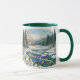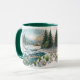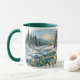 gemütlich mit einer gemütlichen Tasse Kaffee und genießen Sie die Winterwunderlandschaft auf dieser wunderschönen Tasse. Mit einer detaillierten Abbildung eines Schneewaldes, gefrorenen Sees und einer gemütlichen Hütte ist diese Tasse der perfekte Weg, um Ihrem Alltag eine Touch Wintermagie hinzuzufügen