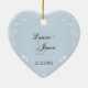 Ein schönes Sakraldekorat zum gemeinsamen Feiern eines ersten Weihnachtsfestes. Es zeichnet sich durch eine silberblaue Kulisse mit Kiefernästen und fallendem Schnee aus. Die Rückseite des Ornaments hat einen Platz für die Braut und Bräutigam Namen und Hochzeitstag und / oder Jahr. Dieses Ornament passt zu unserer Winterwonderland Hochzeitskollektion, die Einladungen, Platzkarten, RSVP-Karten, Gastgeschenke Hochzeiten und vieles mehr zum Kauf anbietet! Bitte schauen Sie sich in meinem Shop hier auf Zazzle um die anderen tollen Produkte und Designs zu sehen und folgen Sie mir für neue Produktaktualisierungen! Vielen Dank für Ihr Interesse an SapphireDesigns!