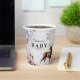 Bezaubernde Winter geschlechtsneutrale Baby Duschpapiertasse. Mit einem mickrigen, winterfarbenen Aquarell, atemberaubendem Waldblättern, niedlichen Waldtieren und leicht anpassbarem Text.