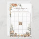 Behalt den Gästen dieses Winter Wonderland Baby Shower Bingo Game. Mit Aquarellwaldtieren, rustikalen Holzschnitzeln und schneebedeckter Vegetation ist es eine unterhaltsame Aktivität, die perfekt zu Ihrem Thema "Babydusche aus Holz" passt.