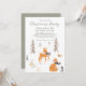 Diese niedliche Party Einladung besticht durch ein Winterwaldmotiv mit skandinavischer Volkskunst. Verschiedene Waldtiere werden in einem Winterwald zwischen Bäumen abgebildet. Ein kleiner Fuchs ist unten mit einem Vogel darüber. In der Mitte befindet sich eine Hirschbraue, auf der links ein kleiner Hasen. Beeren und Blattwerk prägen das Bild. Es eignet sich ideal für eine Babydusche im Winter, zum Geburtstag oder zum Weihnachtsgebäck.