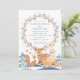 Die zauberhaften Winterwaldtiere sind im Volkskunstmuster gehalten. Ein sehr hübscher blau-goldfarbener Kranz mit roten Akzenten umgeben die Details der Babydusche. Die Waldtiere sind eingebettet in eine Winterlandschaft mit Bäumen und Hügeln. Zu den Tieren zählen ein Bär, Eichhörnchen, Kaninchen, Fuchs und Vögel.