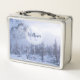 Winter Wunderland Nebel Fichtenwald Schneemonogram Metall Brotdose