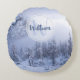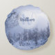 Winter Wunderland Nebel Fichtenwald Schneemonogram Rundes Kissen