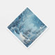 Hübsche Papierservietten mit einem Bild eines schönen, schneebedeckten Kiefernwaldes. Ein schöner Wintertag mit blauem Himmel und fallendem Schnee.