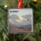 Ein Glatzenadler entlang der schneebedeckten Chugach Range bei Anchorage, AK. Es erscheint auch der Text "ALASKA" mit individualisierbarem Text.