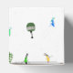 Modernes Wintermotiv-Design mit Skifahrern, die Skipisten zwischen schneebedeckten Tannenbäumen in den Alpen abfahren. Freeride-Skifahrer tragen farbenfrohe Vintage Retroski-Anzüge, Skiabfahrt mit Skiern auf weißem verschneiten Berglandschaft und Retro-Skilifte. Wunderschönes Wintersportspendengeschenk für Skifahrer in Ihrem Kreis von Freunden, Kollegen oder Familie. Whimsical Skier Kunstwerk Illustration Design. Personalisiertes Skigeschenk. Skilangläufer zum Thema Party