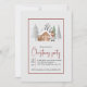 Winterbär und Bäume Glückliche Feiertage Weihnachten Party Einladung, die einen Racon in Winterkleidung, ein Haus und Schneefall.