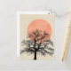 Silhouette eines Baumes mit kahlen Ästen im Winter mit einer rötlichen Sonne auf hellbeigem Hintergrund.