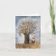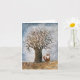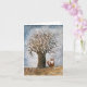 Eine winterbezogene Grußkarte mit einem Bild eines Baumes und eines Fuchses.