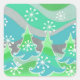 Eine moderne, stilvolle Winterlandschaft mit mattierten Kiefern und glitzernden Schneeflocken. Aufkleber mit einem grünen, blauen, silbergrauen und weißen, anpassbaren Design für Sie, um mit Ihrem eigenen Text, Bildern und Ideen zu personalisieren. Ein digital verstärkter Bleistift, der von Jess Perry gezeichnet wird.