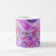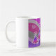 Eine moderne, stilvolle Winterlandschaft mit mattierten Kiefern und glitzernden Schneeflocken. Tasse mit einem lila, rosa, silbergrauen und weiß anpassbaren Design für Sie, um mit Ihrem eigenen Text, Bildern und Ideen zu personalisieren. Verfügbar in allen Stiloptionen. Ein digital verstärkter Bleistift, der von Jess Perry gezeichnet wird.