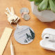 Ein schöner Wintergarten mit schneebedeckten Wäldern aus dunkelgrünen Fichten und Tannen und einem hellgrauen Himmel schmückt diesen Schlüsselanhänger. Dieses moderne zeichn einer schneebedeckten Naturlandschaft eignet sich ideal für eine Gastgeschenk Hochzeit im Dezember oder Januar Abends.