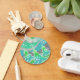 Eine moderne, stilvolle Winterlandschaft mit mattierten Kiefern und glitzernden Schneeflocken. Schlüsselanhänger mit einem grünen, blauen, silbergrauen und weißen Design, das für Sie individuell gestaltet werden kann. Mit einem digital verbesserten Bleistift gezeichnet Bild.