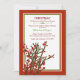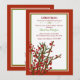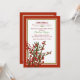 Zweige von Winterbeeren und Kiefern bilden ein saisonales Bouquet, um diese rote, grüne und weiße Einladung zu unterstreichen. Eine wunderbare Urlaubskarte, Party Einladung und mehr.