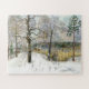 Künstler von Zolotareva. Aquarell auf Seide - manuelle zeichn; Steinbrücke durch den Fluss im Dorf.Blick auf eine schneebedeckte Brücke im Wald.Schnee, spektakuläre Landschaft.Stark weiße Schönheit des Winters.