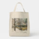 Künstler von Zolotareva Wasserfarbe auf Seide - manuelle zeichn; Steinbrücke durch den Fluss im Dorf.Blick auf eine schneebedeckte Brücke im Wald.