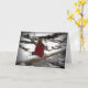 Diese Freundschaftskarte enthält eine nachdenkliche junge Frau in einer roten Jacke, die auf einem gefallenen Holzschacht an einer teilweise eingefrorenen Bucht sitzt und über die schneebedeckte, kalte Winterszene nachdenkt. Der Text lautet: Denken Sie nur an Sie... Es kann an Ihre Bedürfnisse angepasst werden, um Ihren Anzug zu gewährleisten.