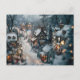 Niedliches Dorf mit Holzhäusern im Winter. Weihnachtskonzept.