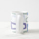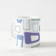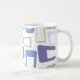 Diese Tasse hat ein modernes Design von wiederholenden Parallelogrammen in Blues und Grüntönen mit weißen Parallelogrammen auf der Oberseite. Wie dieses Design, aber wollte verschiedene Farben? Nachricht.