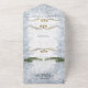 Zarte Gold- und Silberbaumdekorationen, umgeben von salzgrünem festlichem Blattwerk mit frisch gefallenem Schnee in einem Winterwunderland-Design für das Ehepaar.