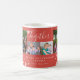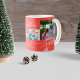 Moderne, elegante Weihnachtsferien-Tasse mit vier Fotos Collage mit (bearbeitbaren) Schriftzeichen mit weißen Schneeflocken auf einem rostigen Hintergrund. ++++++++++++++++++ Persönlich mit Ihren Familienbildern, Namen und Text!