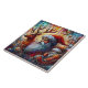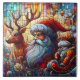 Eine lebendige Darstellung des Weihnachtsmannes mit einem bunten Bart, begleitet von einem majestätischen Rentier, Set vor einem Hintergrund wirbelnder Winterfarben.