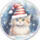 Winterfluffy Cat in der Weihnachtsmannmütze Roter Aufkleber