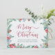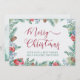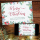 Einfache und elegante Weihnachtskarte, personalisiert mit Ihrer Nachricht und Ihren Namen(en). Dieses Aquarell-Design hat einen schönen Rahmen von Winterpflanzen und Grün, mit Kiefern, Blume, Heiligen und Beeren auf der Vorderseite und einem Wald von Tannenbäumen auf der Rückseite. Frohe Weihnachten wird in Wirbler Kalligrafie handgeschrieben und Ihr eigener Text ist in moderner Typografie gedruckt. Bitte stöbern Sie in meinem Geschäft, um Artikel, Geschenke und Wohngestaltung zu koordinieren.